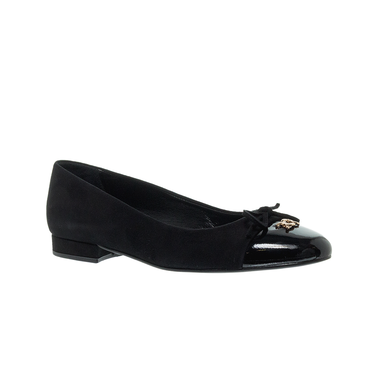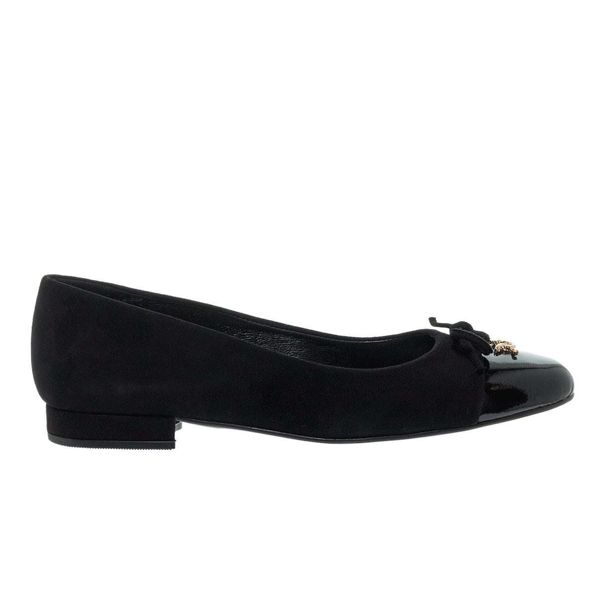 ●Μαύρο suede δέρμα εξωτερικά με λουστρίνι λεπτομέρεια και χρυσό διακοσμητικό