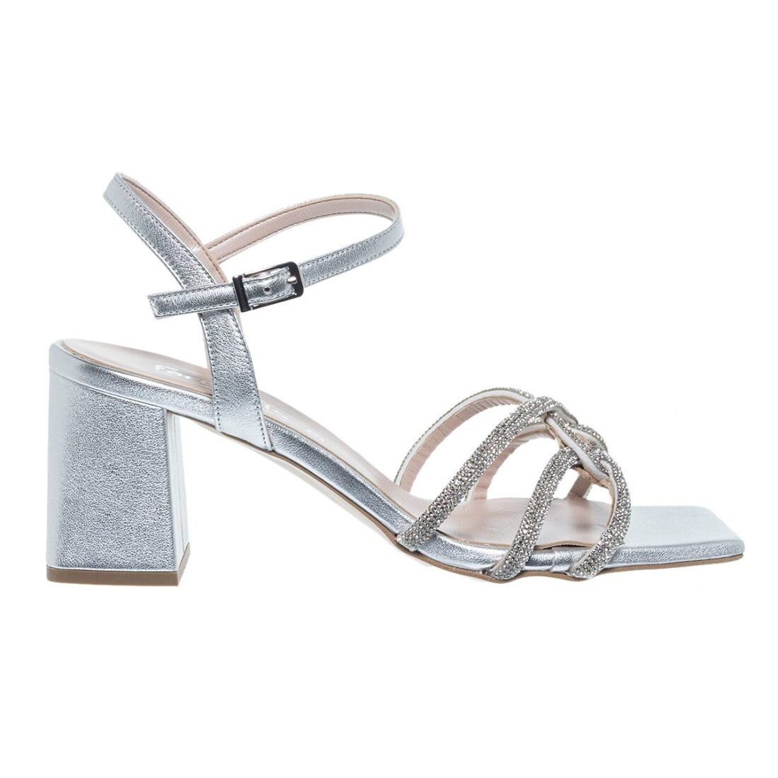 ●Ασημί δέρμα εξωτερικά με ασημί strass