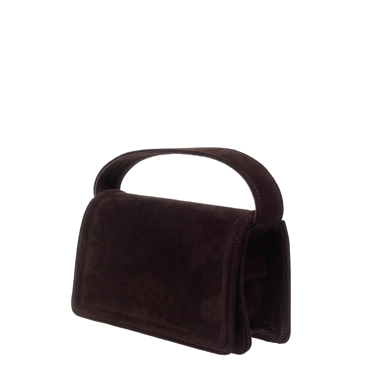 ●Καφέ suede δέρμα εξωτερικά με extra χρυσή αλυσίδα ώμου