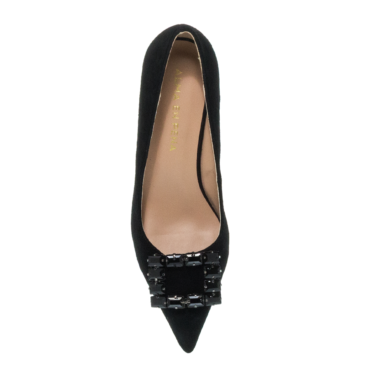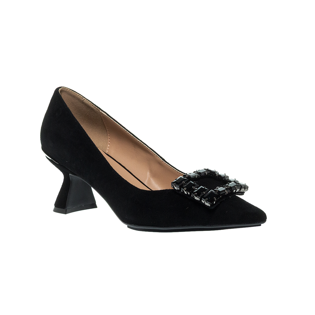 ●Μαύρο suede δέρμα εξωτερικά με αγκράφα μαύρη strass