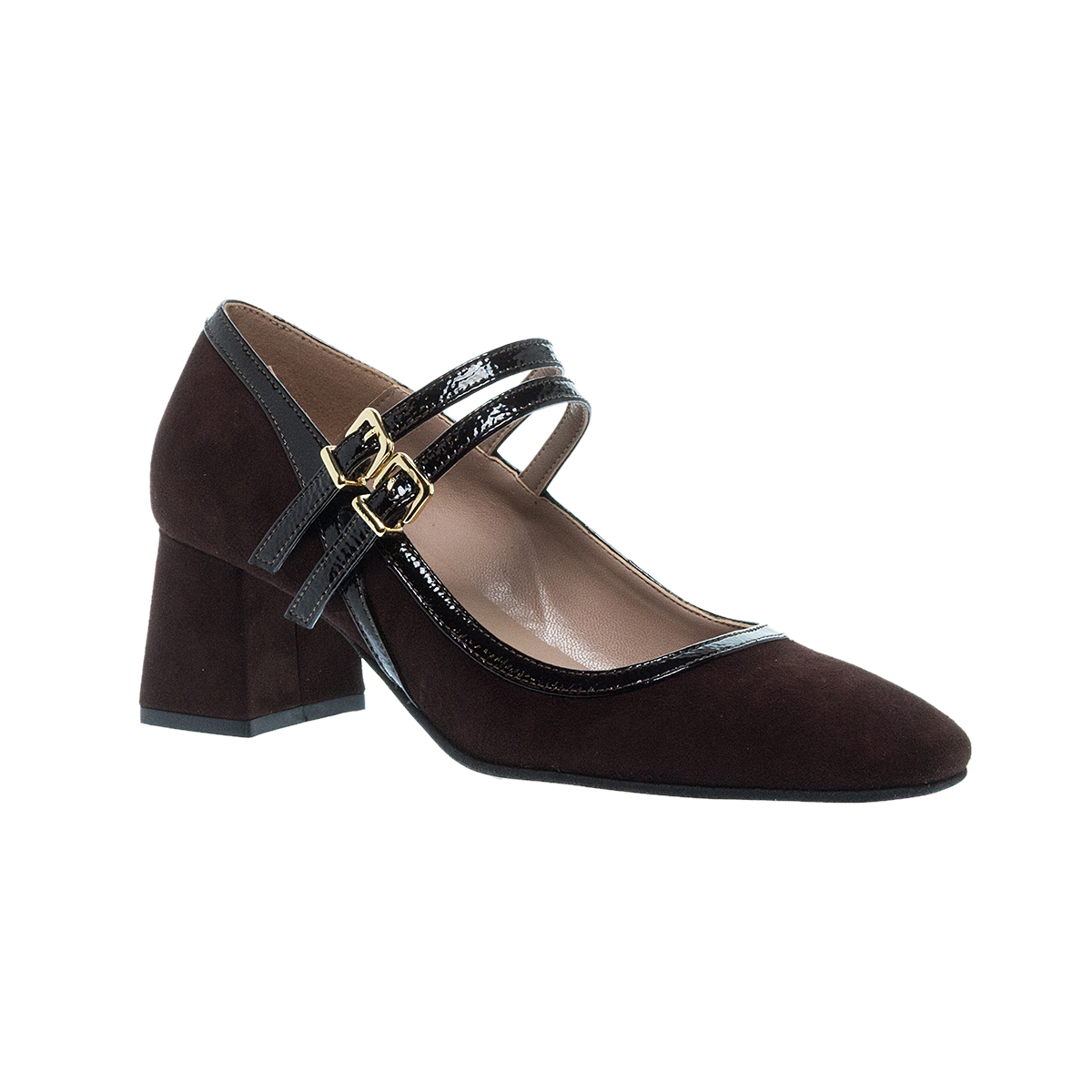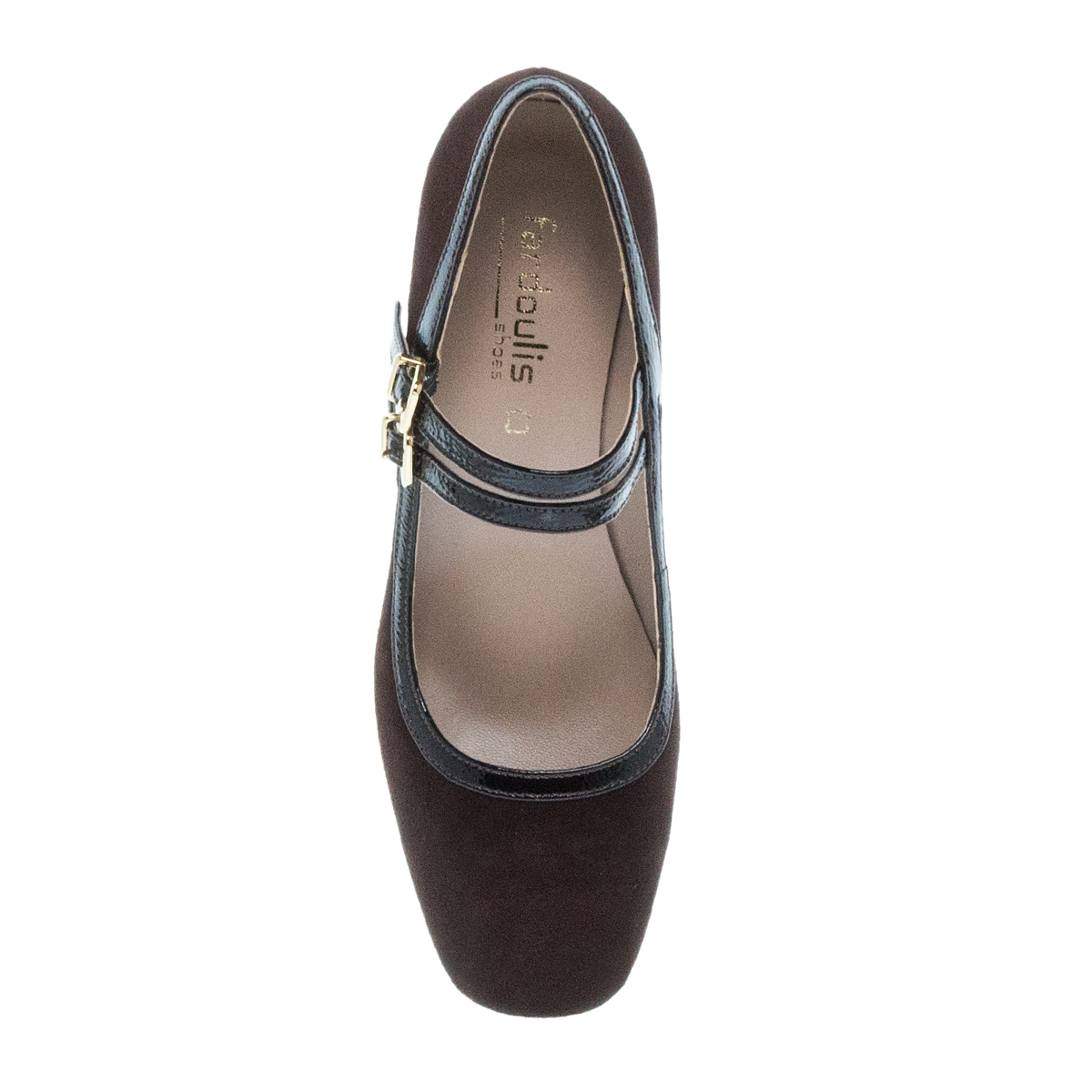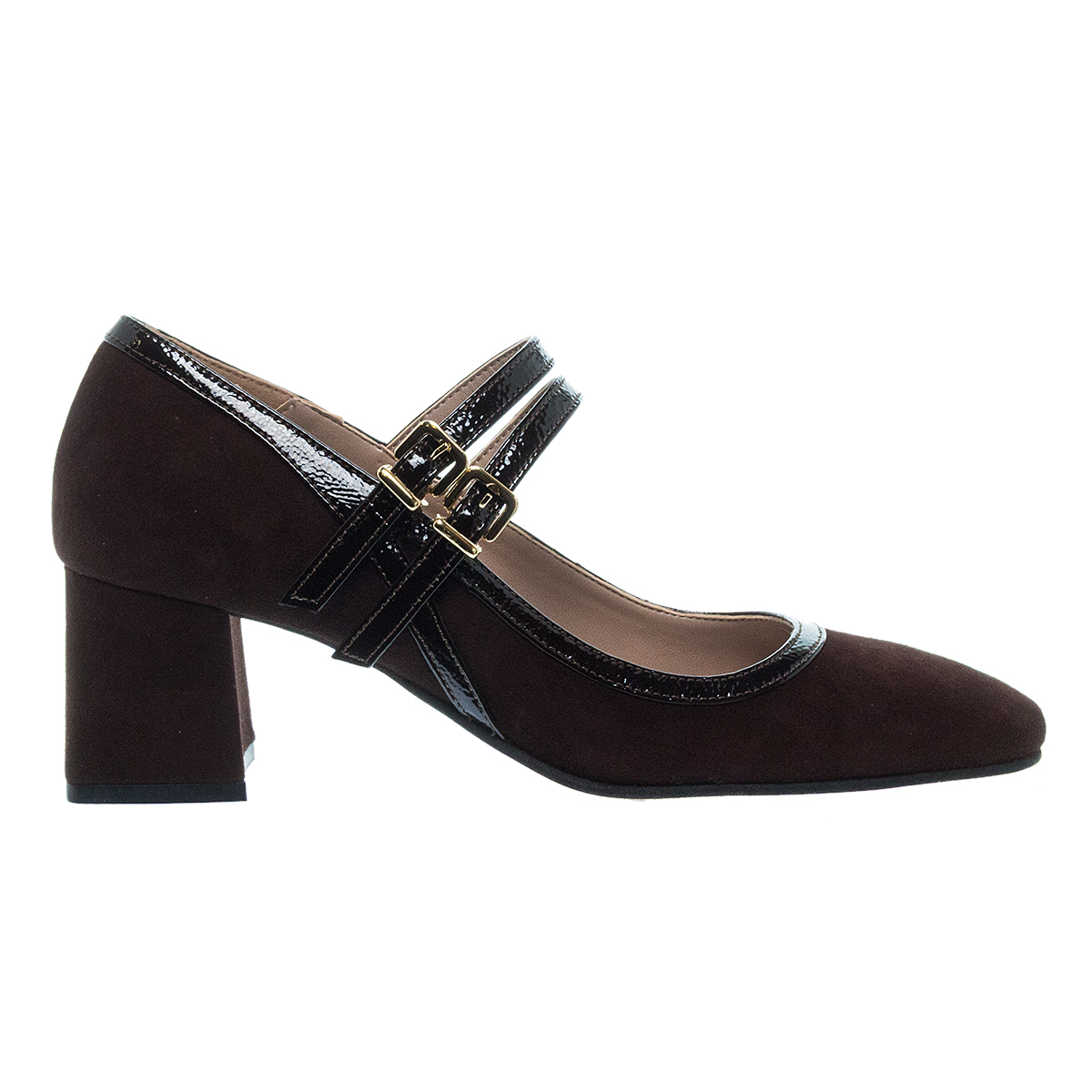 ●Καφέ suede δέρμα εξωτερικά με λουστρίνι λεπτομέρειες