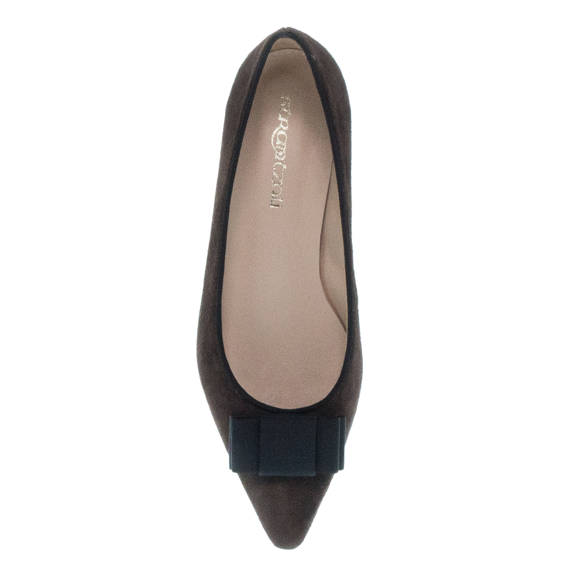 ●Καφέ suede δέρμα εξωτερικά με μαύρο φιόγκο