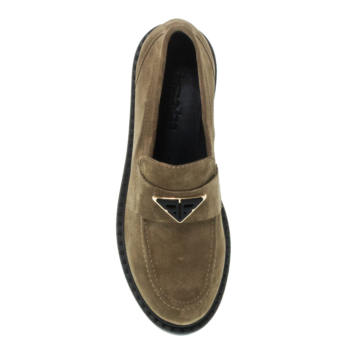 ●Λαδί suede δέρμα εξωτερικά με μεταλλικό διακοσμητικό